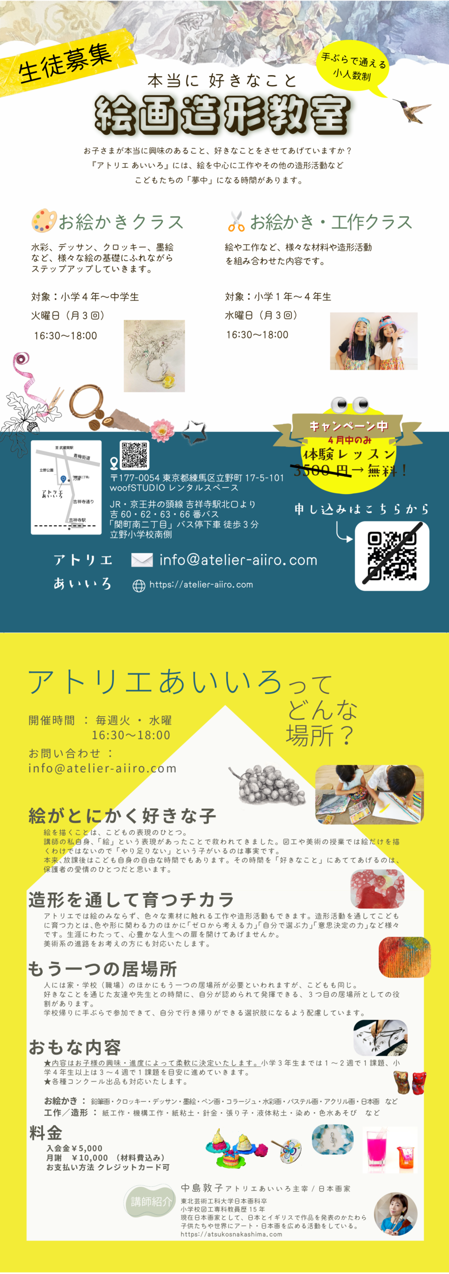 ※体験レッスンはチラシのQRコードではなく、上記メールアドレスまでお願いいたします。